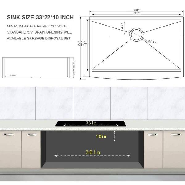 Siavonce Silver Stainless Steel 33 In Single Bowl Farmhouse Apron Drop In Kitchen Sink 16 Gauge With Curved Front Ms Zc Sf322bn The Home Depot