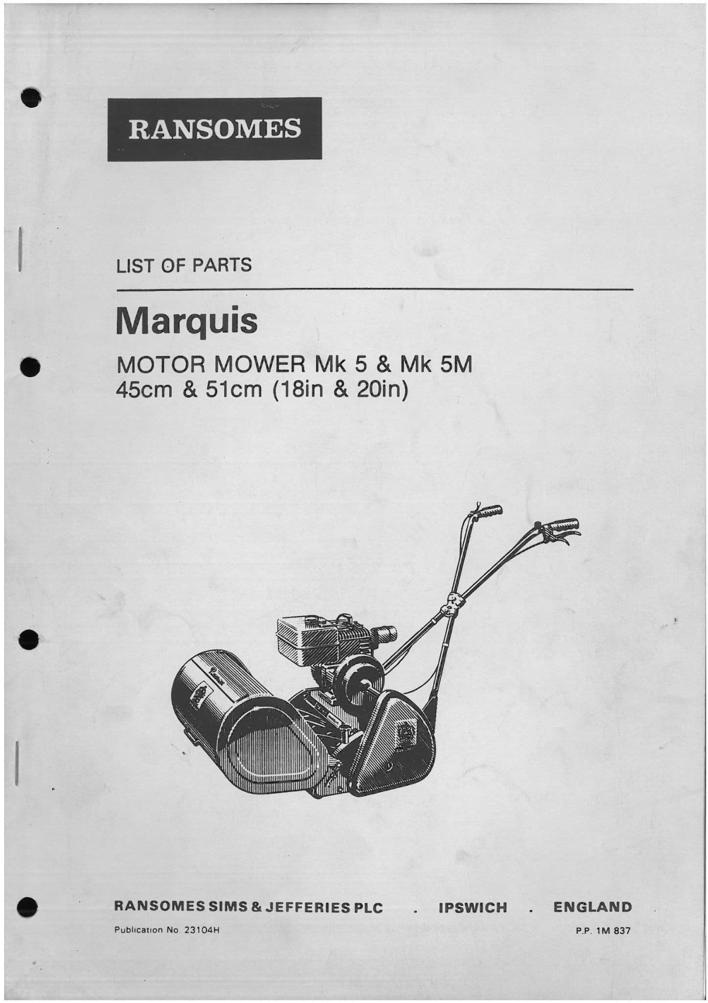 Ransomes Grass Cutting Machine Marquis Mk5 Mk5m Mower Parts Manual